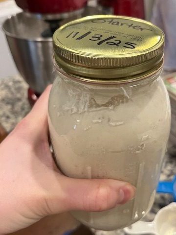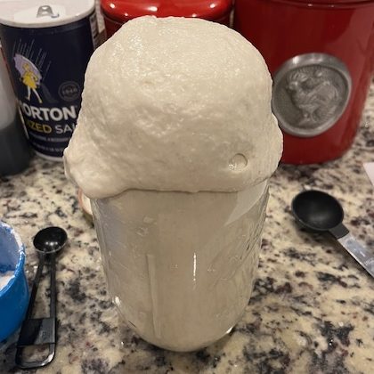 Y’all!!!!! I finally have a stand mixer!!!! My in-laws got me a Hamilton Beach Electric Stand Mixer for Christmas!! I absolutely love it! I will add the link to my Links & Supplies page! Fernandough was a happy and bubbly starter this morning!