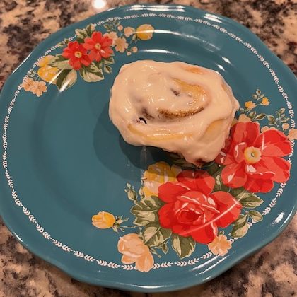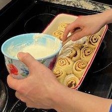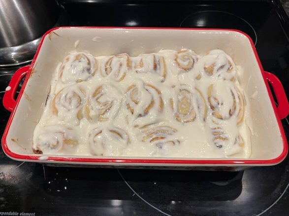 I roped my husband into icing the cinnamon rolls! We were excited to try them out and they were good. However, I would add a lot more cinnamon to them next time. The icing came out perfect but the rolls didn’t have enough flavor in my opinion.