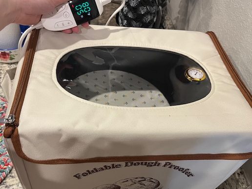 It is winter time and everyone’s houses are colder than usual. If you need an extra boost during the winter months then I recommend getting this bread heating box off of Amazon. It was my first time using it so I was really excited! It has a controller where you set the temperature you want and the hours you want. I recommend ‘preheating’ it for a half hour or so before using it so you can get a jump start. That is something you would probably need to do right before you gather your ingredients to start your recipe. The link to the bread heating box is in my Links & Supplies page if you’re interested in getting one!