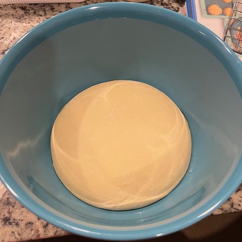 Once you have your dough into a ball, place it in a bowl, cover and let it rise for 4-5 hours at 80 degrees Fahrenheit. You will want your dough to be double in size before starting the next step. I covered my dough with the Esembly bowl caps I got off of Amazon and they always seem to work well. I have attached the link to these bowl covers in my links and supplies page if you are interested in checking them out!