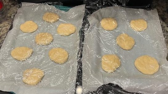 The recipe says you will end up with 10 buns, but I ended with 12 so it honestly depends on how big you want your buns to be. I used two baking sheets lined with parchment paper and this worked fine for me. Now, it’s time for your last rise. Cover your dough with saran or cling wrap and place a kitchen towel over both of them. Let them rise for 2-3 hours in a warm place. I had them on top of the stove so I had my overhead light on to give off extra warmth.