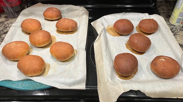 Using a bread knife or jagged edge knife, cut your buns in half and serve with anything that requires a hamburger bun! We had burgers with ours as well as sloppy joes and these hamburger buns made it even more enjoyable. If you have any suggestions on what I should try next then please comment below! Stay tuned for more yummy recipes like this!