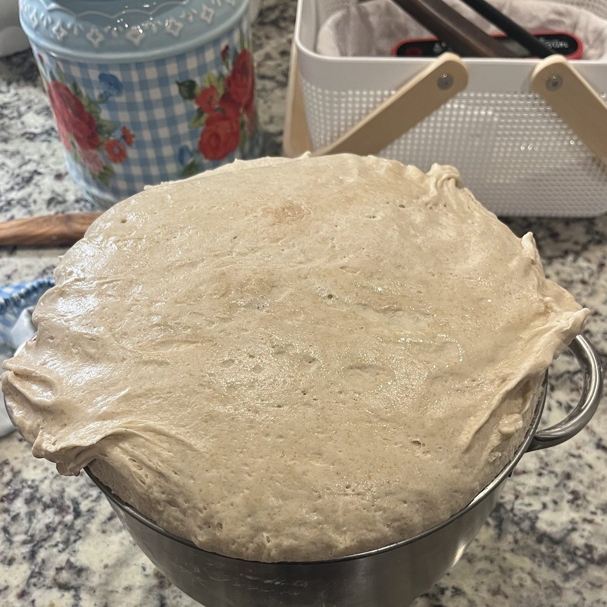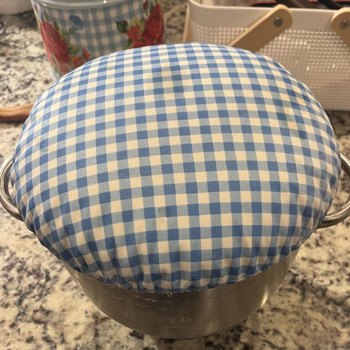 Before you set your dough in your bread box or wherever you put your dough to do the bulk rise, make sure you cover it. I use the esembly bowl caps and they have worked well for me. I put some oil on the top of mine before covering the bowl so the dough would not stick to it. The link for these bowl caps is on my Links & Supplies page so go check them out!